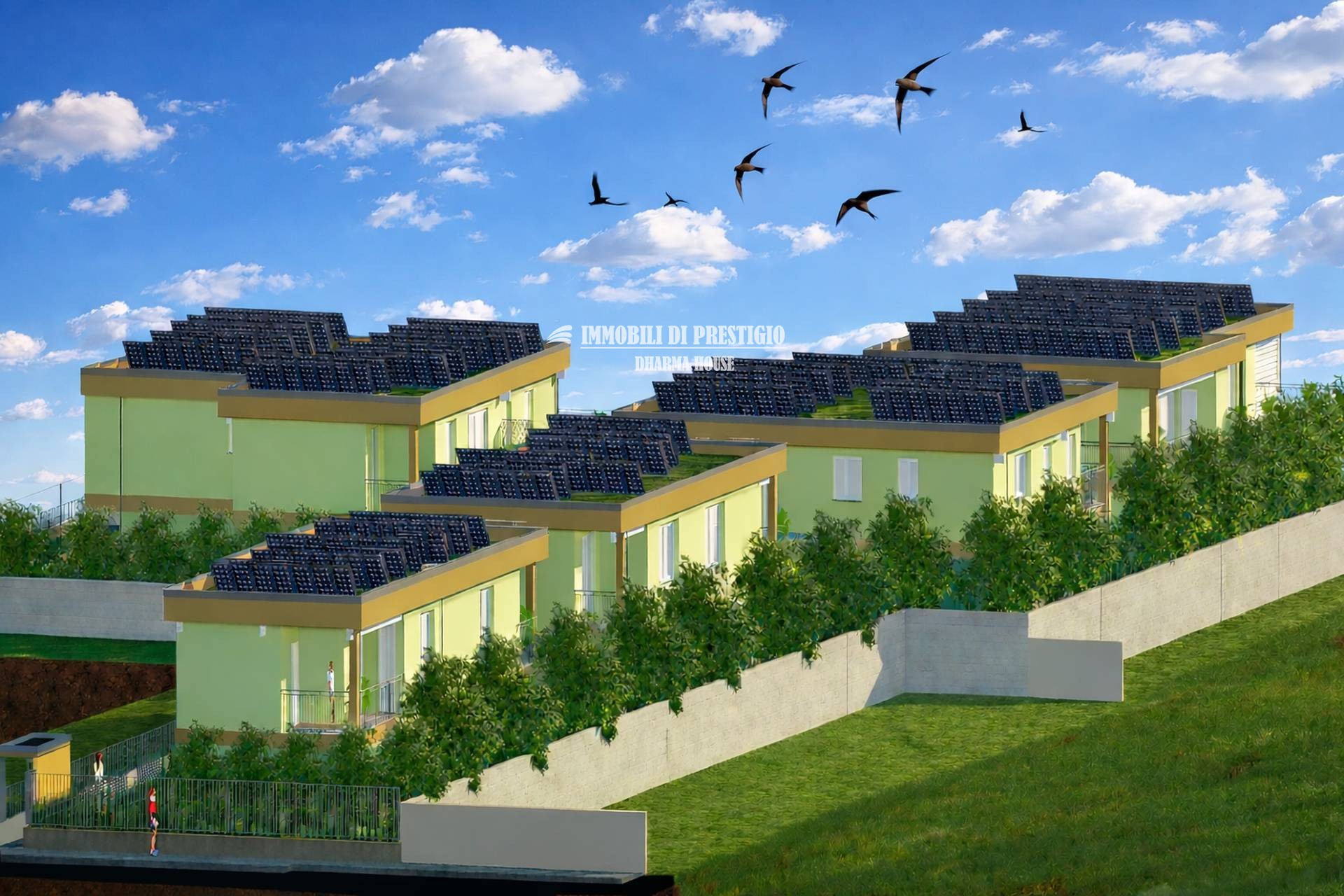 L’ipotesi progettuale attuale contempla la realizzazione di circa 30 unità abitative con tagli da 2, 3 e 4 locali, dotate di terrazzi e giardini di proprietà.