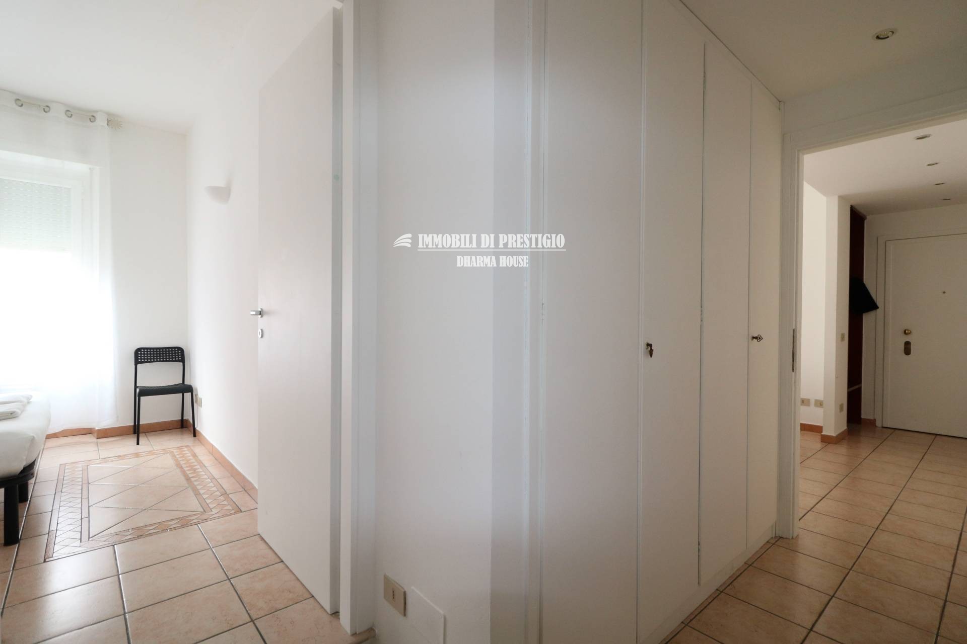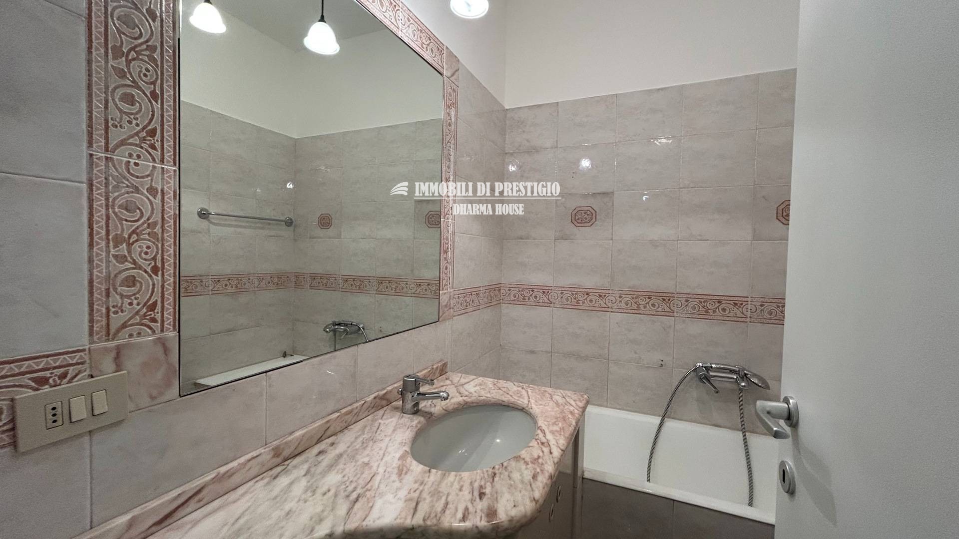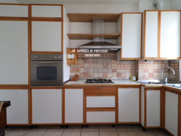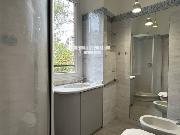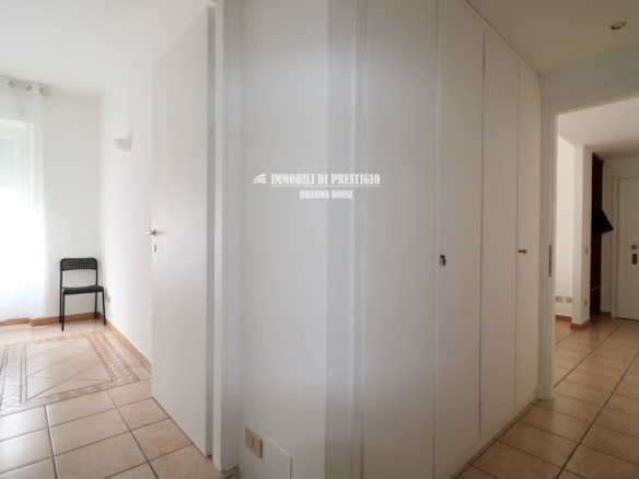 Dall’ingresso con comoda nicchia per riporre i cappotti, l’appartamento si sviluppa a destra con il soggiorno con balcone, la cucina semi-abitabile, la sala da pranzo, un disimpegno armadiato e un bagno finestrato con doccia; proseguendo, invece, dritti lungo il corridoio armadiato si accede ad un secondo bagno con vasca e alla camera da letto.